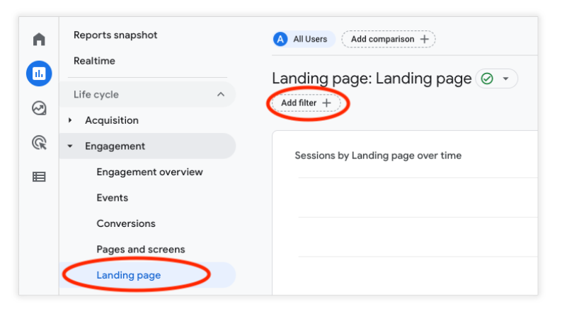 Reports → Engagement → Landing page