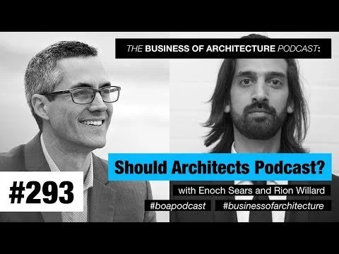 At first, Rion’s interest was to understand and apply insights from these interviews to his own practice, TTHS Architects, but he realized these conversations would also make for good podcast content. Next, he reached out to Enoch Sears to inquire if he could publish the interviews through his existing podcast, the Business of Architecture.
